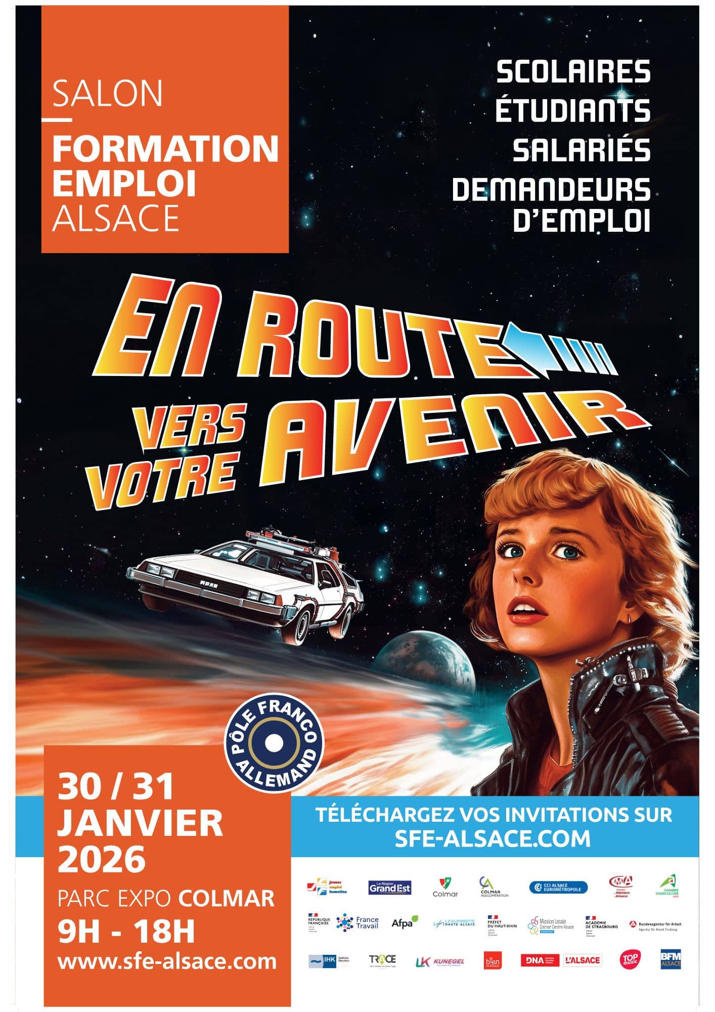 La prochaine édition du Salon Formation Emploi Alsace aura lieu les 30 et 31 janvier 2026, de 9h à 18h, au Parc Expo de Colmar !